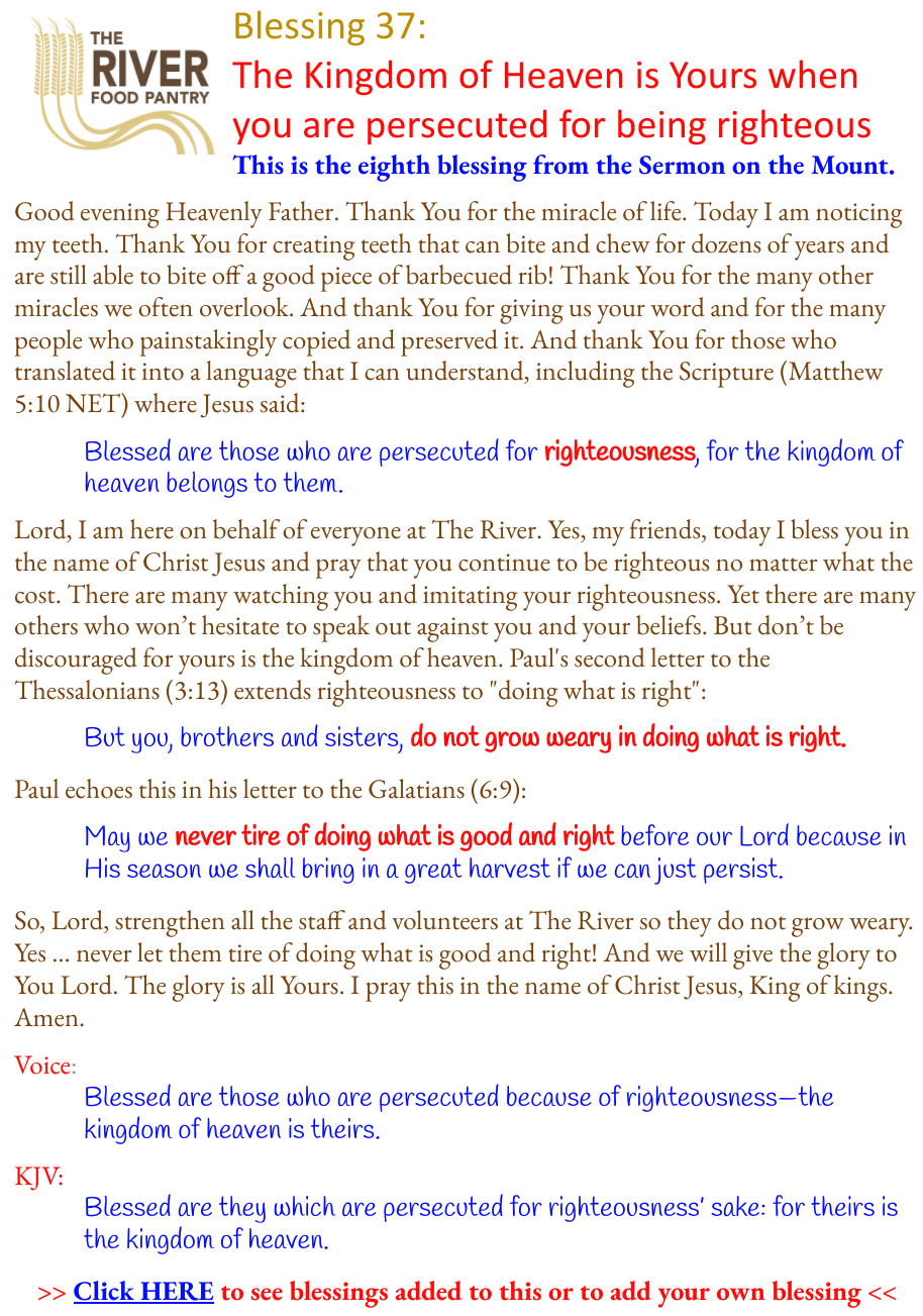 Blessing 37: The Kingdom of Heaven is Yours when you are persecuted for being Righteous Image• Posted on April 29, 2020April 29, 2020 by Technoheaven Author: Technoheaven consider this question: "Where do you hope to be in 400 years?" View All Posts